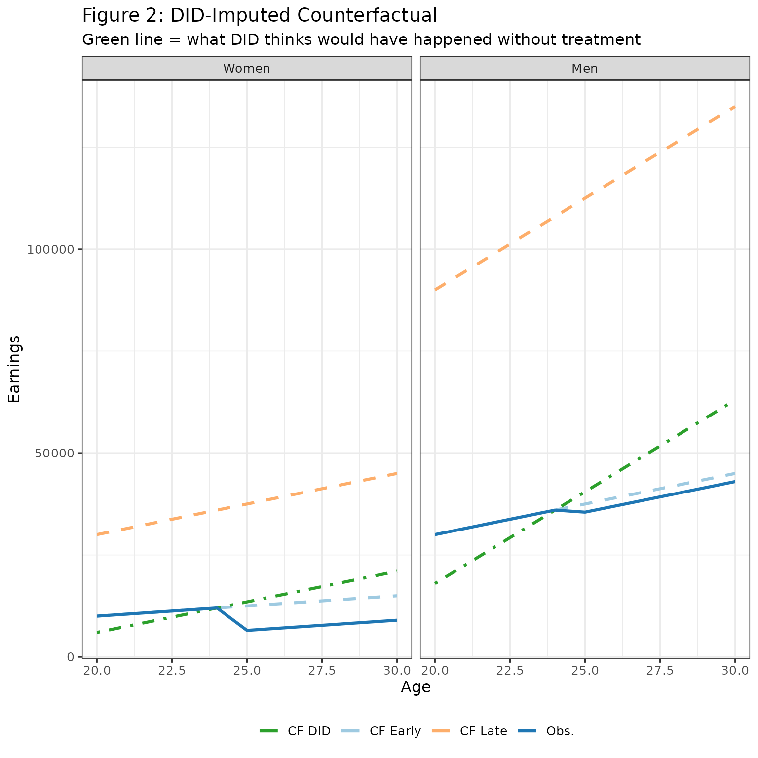 # Late cohort: counterfactual only (not yet treated at these ages for early cohort)