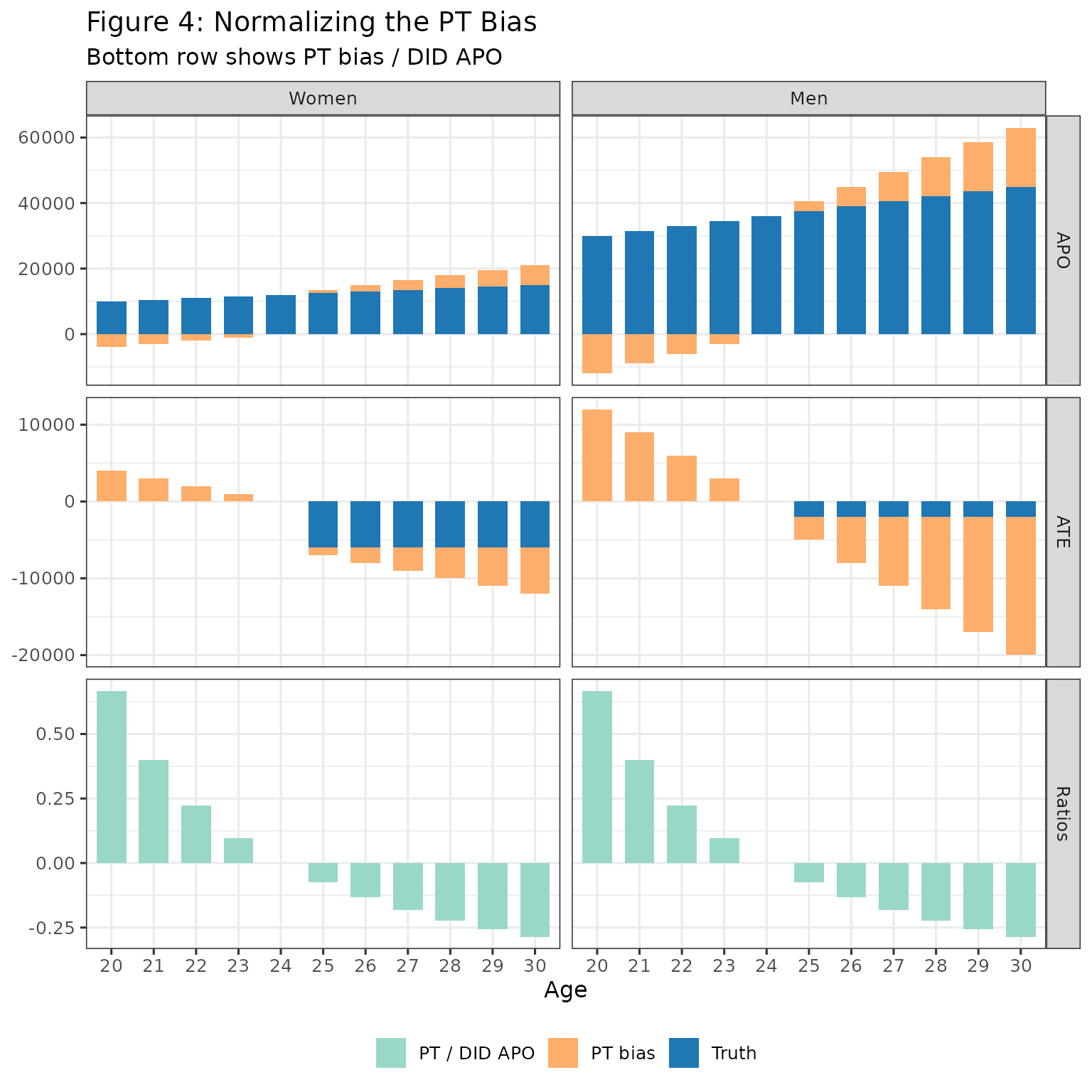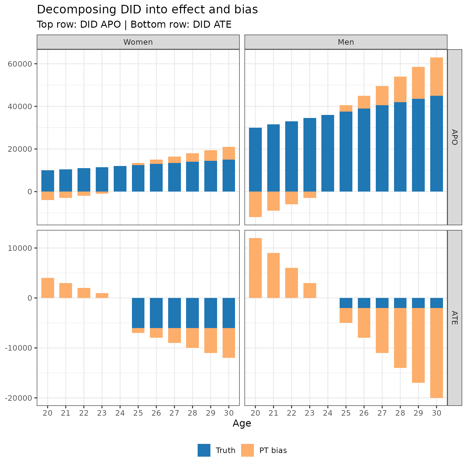labels = c("Truth", "PT bias", "PT / DID APO", "Truth × Bias")