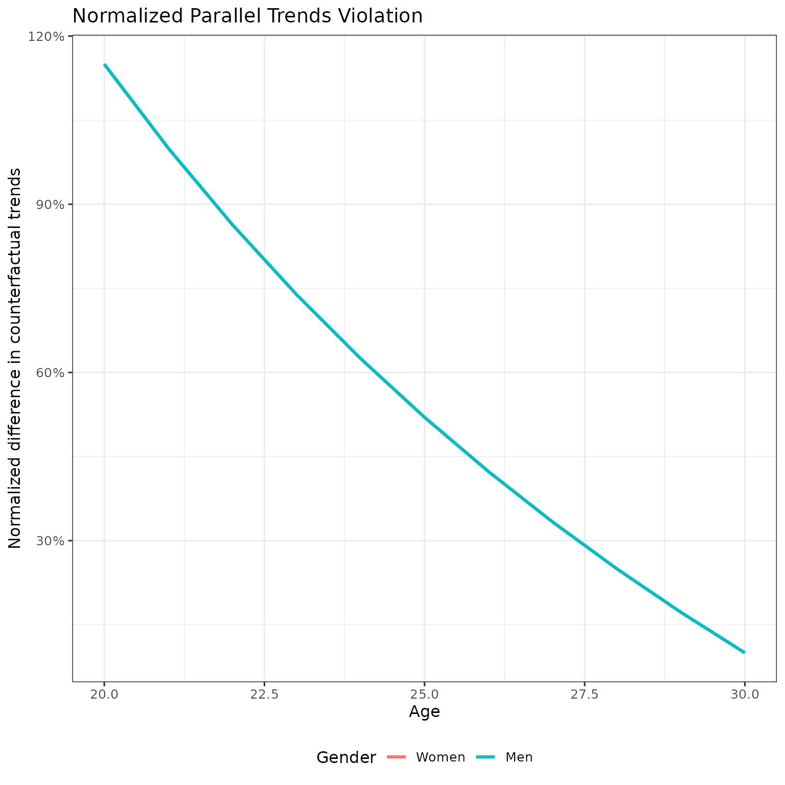 Recall, that NTD assumea that normalized violations of parallel trends are equal across genders.